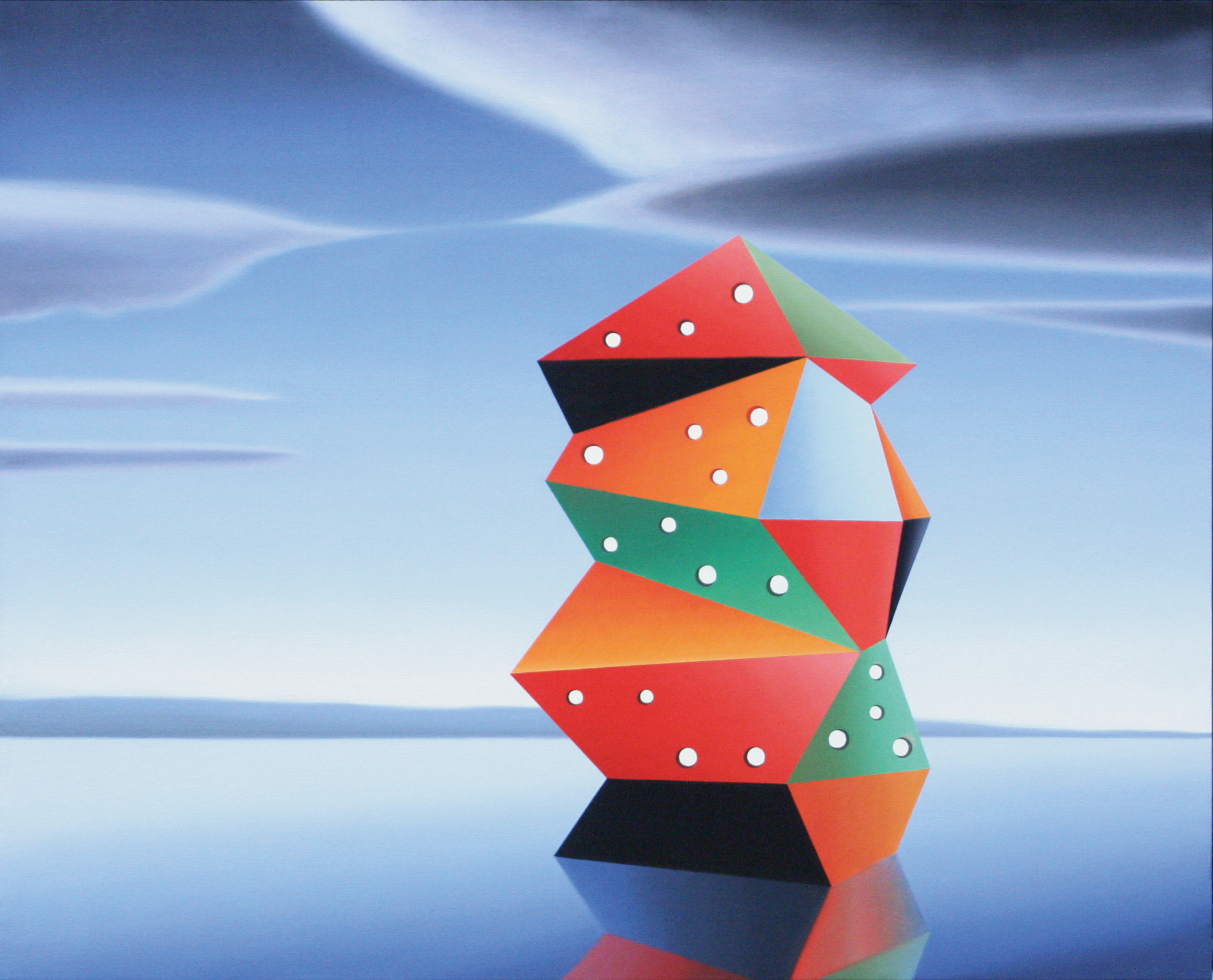 La obra de Argüello se caracteriza por una iconografía austera, como podemos advertir en esta exposición. La arquitectura, más o menos fantástica, se emplea aquí como elemento dominante, entre juegos geométricos y artefactos inverosímiles. El pintor, influenciado por arquitectos contemporáneos como Niemeyer o Mies van der Rohe, mantiene una interesante tensión con la naturaleza (o con su ausencia) bajo composiciones que persiguen una simultaneidad de estados de ánimo. En ese proceso de creación de las imágenes Argüello intenta fabricar ‘sensaciones’, conectando los planos de manera rítmica, como si tratase con un poema, un pentagrama o una progresión matemática. El análisis de ese estado de ‘ensoñación’, común a creador y espectador, bajo cálidos tonos y cielos tintados de colores extremos, nos propone un alegre fabulario de historias, aptas para la vivencia íntima.